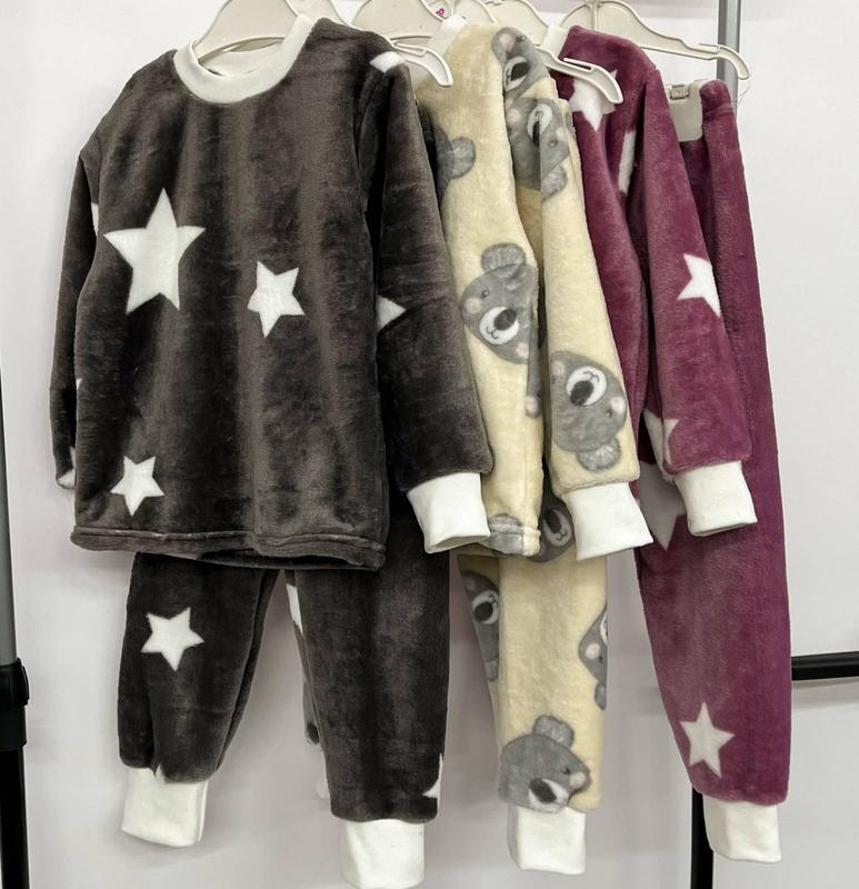 Пижама детская для мальчика и девочки (кофта с длинным рукавом, под манжет, низ растол, горловина манжет + штаны на резинке, низ под манжет), очень теплая мягкая к телу пижамка, в холодное время идеальный вариант, подойдет деткам от года до 7-8 лет. Пошита из синтетической (полиэстер) ткани вельсофт, но она безопасна, гигиенична и гипоаллергенна, поэтому это дает возможность изготавливать из нее текстиль для беременных и кормящих мам, для новорожденных детей, для людей-аллергиков, легкая и при этом теплая (ткань быстро нагревается от температуры тела, а в дальнейшем хорошо ее сохраняет на должном уровне), не теряет форму при многократной стирке, материал обладает хорошей воздухопроницаемостью благодаря пористой структуре. Сезон: зима Полотно: вельсофт наб. рост 110- 315 грн