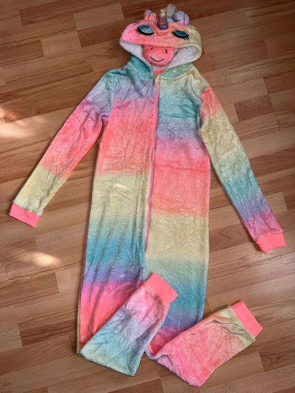 PRIMARK, 12-13 лет, рост 158 см. Длина 126 см, длина от плеча до между ножек-72 см, шаг 54 см. Пог 44 см. Рукав от плеча 57 см, плечи 37 см. На спинке вышиты крылья. Весь блесте. Крылья, рог, очки-блестки. На свету классно блесте. Состояние отлично
