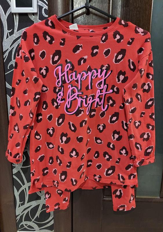 Костюм в леопардовый принт от Next красного цвета. Состоит из легинсов и удлиненого лонгслива. Состояние отличное, без дыр, пятен, катышек. На бирке указан размер 9 лет и рост 134 см, го можно одевать с 7 лет. Замеры по запросу. Произведен в Камбоджи. Ткань 98% коттон.