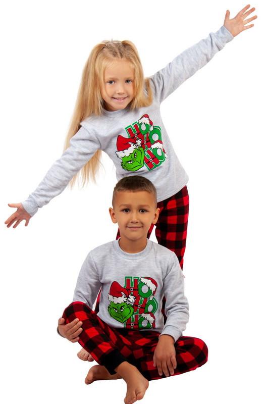 Утеплена піжама для дітей із футера з начосом, складається з кофти з довгими рукавами на манжетах з коміром-стійкою, та прямих штанів на манжетах з широкою еластичною тасьмою. Модель виконана в комбінації однотонного полотна з набивним в актуальному взимку принтом у клітинку, на кофті стильний новорічний малюнок. Комплект може використовуватися, як домашній костюм. Полотно якісне, з натуральним складом, має гарну теплоізоляцію, м'який начіс приємний до тіла.. Полотно: футер із начосом. Склад: 100% бавовна. Рекомендації по догляду: прати при температурі не більше 30°C, малюнок прасувати тільки за виворотом. Полотно містить бавовну, після прання дасть усадку до 7 см. Прохання враховувати це при виборі розміру. Джемпер 98 104 110 116 122 Довжина виробу 40 42 44 47 49 ±2 Ширина виробу по грудях 30 31 32 33 34 ±1 Довжина рукава від горловини 42 45 46 50 52 ±2 Штани Довжина виробу 56 61 64 68 71 ±2 Довжина кроку 38 41 44 48 50 ±2 Ширина виробу по стегнах 29 30 31 33 34 ±1 Ширина виробу по талії 21 21 22 22 23 ±1