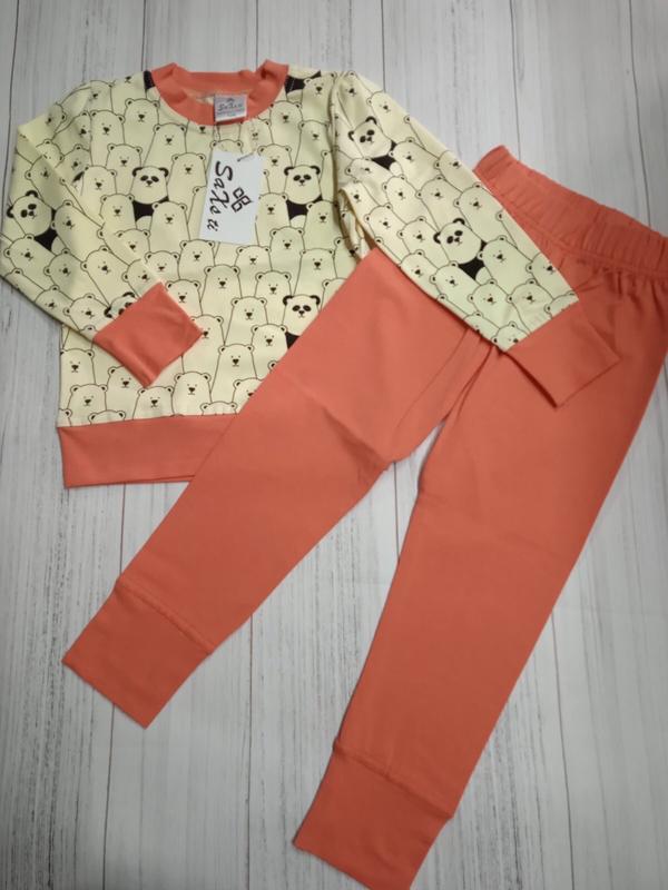 Детская пижама с мишками, комбинированная Модель унисекс.Рукава и штаны на манжете. Ткань стрейч кулир Не кашлатится!Гарно держит форму после стирки. Размеры в наличии: 104 110 116 122 128