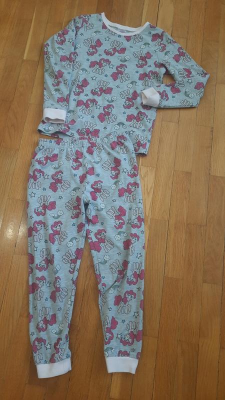 В очень красивом состоянии пижама на девочку 6-7роков. Длина футболки по спинке 42см, длина рукава с плечом 49см, ширина подмышками 36см. Длина штанины с поясом до низа 65см, длина с поясом до памперса 24см, талия 27см.