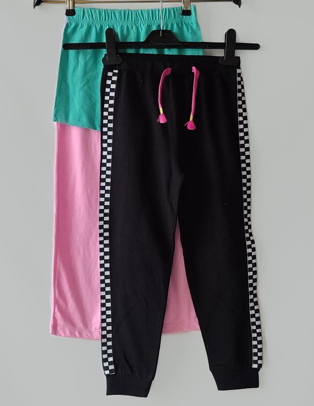 нові без бірки цена за 3 од= штани 2 шт + шорти 5-6 лет 116 см тонкие рожеві \ чорні щільніші 100% бавовна 35% бавовна 65% поліестр пот 26 см длина 66, 67 см, шаг 45, 46 см.