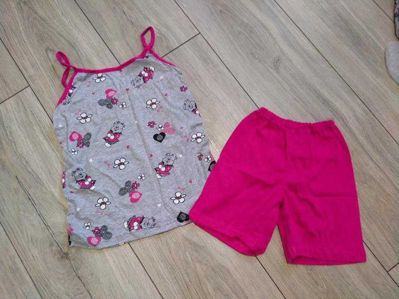 В наличии детская пижама. Р 34,38,48. Тканина бавовна. Замеры: 34р Длина майки 471см, пог 29см Длина шорт 27см, ПОС 27см 38р Длина майки 47см, пог 32см Длина шорт 28.5см, ПОС 30см 48р Длина майки 55см, пог 38см Длина шорт 35см, ПОС 41см