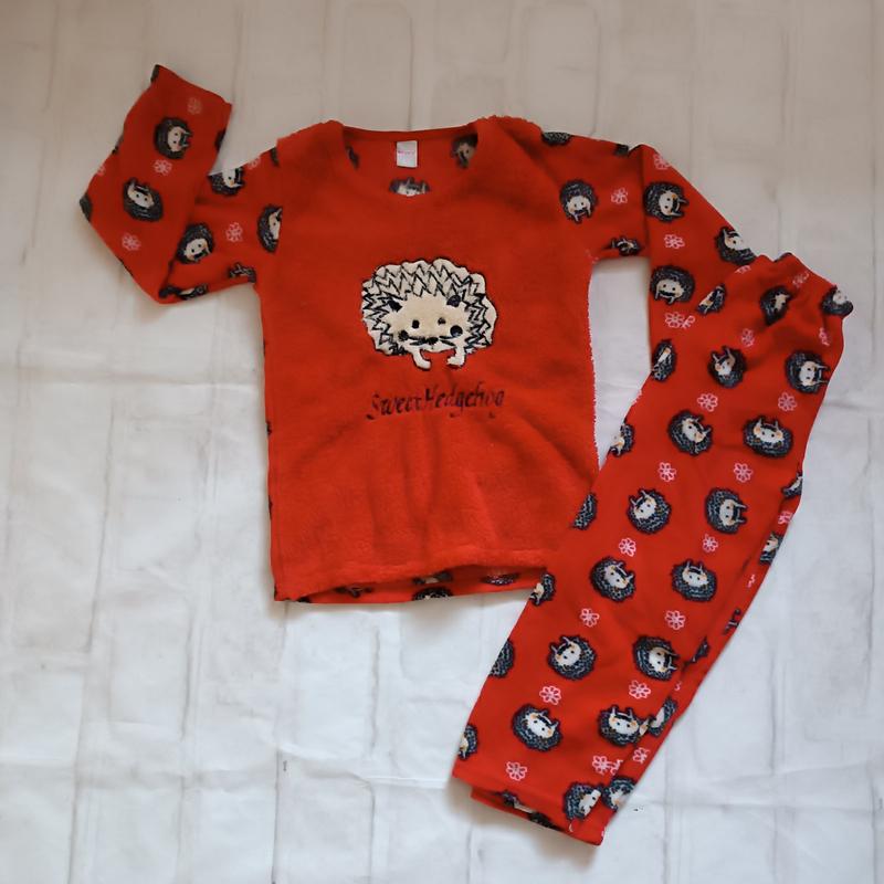 Пижама теплая. Ткань махра и флис. Рисунок принт и нашивка. 95% бавовна, 5% еластан. Турция. Размер: 10 лет. Маломерит на 1-2 размера.