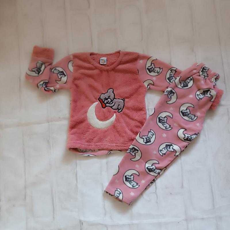 Пижама теплая. Ткань махра и флис. Рисунок принт и нашивка. Турция. Размер: 6 лет. Цвет: пудра. Маломерит на 1-2 размера.