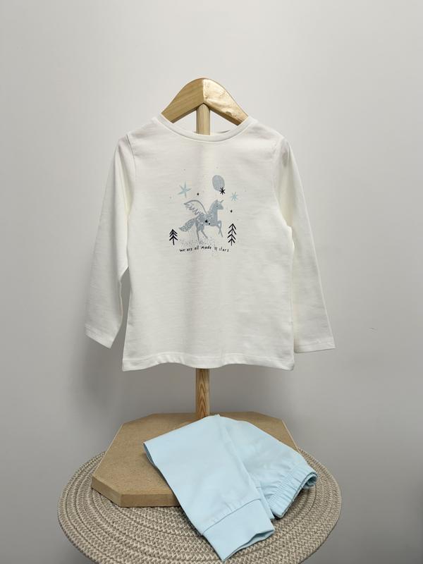 Коттоновые легкие и приятные к телу пижамы для девочек от бренда George❤️ Состав: 100% коттон ✨ с разнообразным принтом ✨мягкий трикотаж ✨длинный рукав с манжетами ✨резинка на талии ✨манжеты на щиколотке Размер в наличии: 📌98-104 см. -белая с единорогом -синяя звездочки Бирка только на одном из комплектов❗️