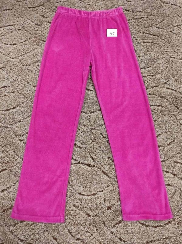 Состояние идеальное! 1. - Мягонькие, уютные велюровые брючки розового цвета, на резинке. Посадка высокая. Замеры : ПОТ 34+10 тянутся - ПОБ 50+5 - длина по боку 94 - дл внутренняя 69 - ширина штанины по низу 18. 2. - Штанишки в клеточку "красное + белое" из мягкого трикотажа. Посадка высокая. Верх на резинке, по бокам карманчики. Замеры : ПОТ 28 (+15 тянутся) - ПОБ 44 (+6 тянутся) - длина по боку 94 - длина внутренняя 73 - ширина штанины по низу 15.