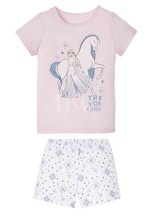 Піжама для дівчинки із персонажем із мультфільму Крижане серце Ельзою. заміри футболка Довжина 39 см / ширина 30 см Шорти Довжина 21 см пояс ( на резинці) 22 см висота посадки 20 см