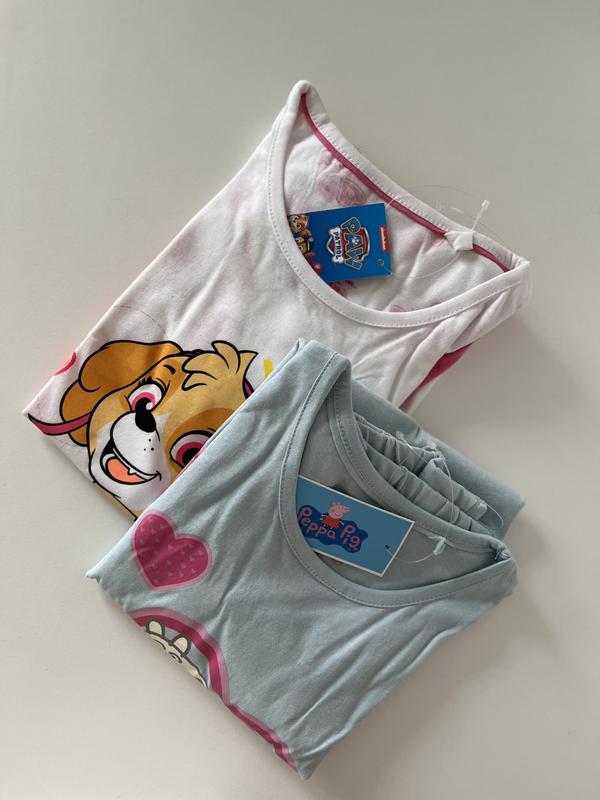 В наличии пижамы для девочек. С патрулем в размере 122,128. С пепой в размере 98/104. Последняя на фото от бренда Topolino в размере 98/104.