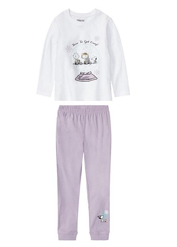 Пижама, комплект для дома на девочку Peanuts. Состоит из реглана и штаников. Реглан с круглым вырезом горловины, спереди принт. Штаники снизу с манжетами, в поясе эластичная резинка. Естественный комфорт благодаря чистому хлопку. Замеры: На рост 110-116 см возраст4-6 лет ПРОДАН На рост 122-128см возраст 6-8 лет: реглан: ПОГ- 35см, длина рукава-46 см, длина по спинке - 47см; штаники: по резинке- 25cм, ПОБ- 34см, длина/шаг- 75/54см Состав 100% хлопок