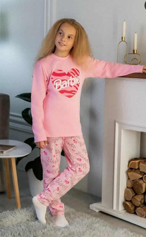 Утепленная пижама для девушек, хлопковая пижама барби, хлопковая пижама с начесом, теплая...
