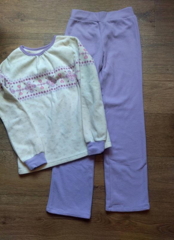 Рост 128-134 Очень легкая и мягкая В новом состоянии Брюки (длина всего изделия 82 Шаговой 60 Талия резинка от 28до37 Кофта (длина всего изделия 50) Плечи 30 Рукав от плеча 50 Под мышками 38 Тканина тягнеться на фото немного тень от камеры