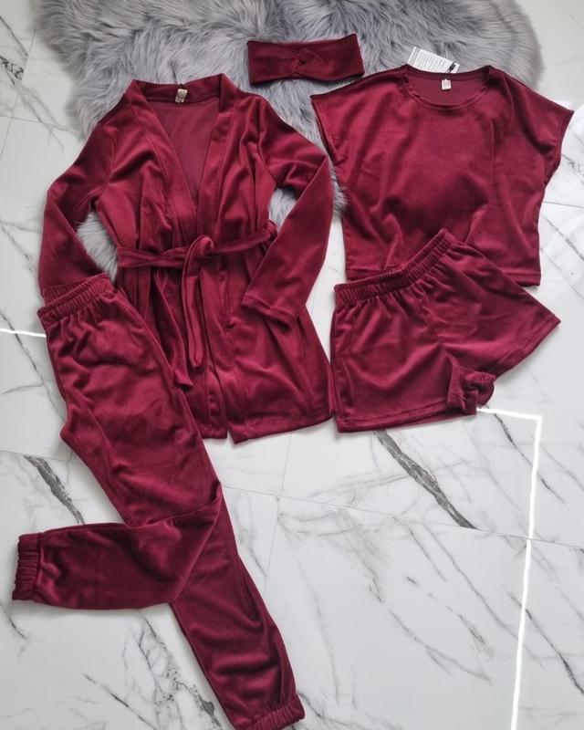 Шикарний набір п’ятірка з королівського велюру В набір входить: ✔️ халатик з пояском; ✔️ штани з карманами та манжетами; ✔️ футболка; ✔️ шортики; ✔️ пов‘язка. Рекомендую❗️ Якість дуже класна, пошиття шикарне❗️ Доступні розміра: 💨 134р. Довжина халата 72 см, рукав 47 см, довжина штанів 80 см, крок 61 см, футболка довжина 40 см, шорти довжина 26 см. 💨 140р. Довжина халата 75 см, рукав 50 см, довжина штанів 85 см, крок 65 см, футболка довжина 44 см, шорти довжина 27 см. 💨 146р. Довжина халата 80 см, рукав 52 см, довжина штанів 90 см, крок 68 см, футболка довжина 46 см, шорти довжина 28 см. 💨 152р. Довжина халата 82 см, рукав 55 см, довжина штанів 95 см, крок 74 см, футболка довжина 48 см, шорти довжина 30 см. 💨 158р. Довжина халата 84 см, рукав 56 см, довжина штанів 99 см, крок 77 см, футболка довжина 50 см, шорти довжина 31 см. 💨 164р. Довжина халата 89 см, рукав 59 см, довжина штанів 103 см, крок 80 см, футболка довжина 52 см, шорти довжина 32 см. 💲 950 грн за набір з 5 елементів❗️ Заміри зроблені по одній ростовці, можлива погрішність +- 1-1,5 см.