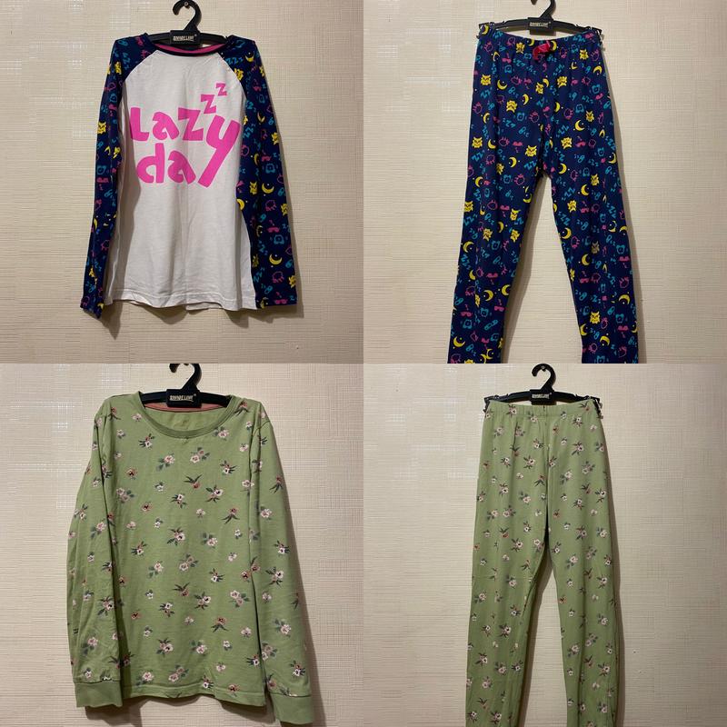 Красиві якісні піжами на дівчинку 10-12 років в дуже хорошому стані. Ціна за 2. Верхня -кофта довжина 53 ширина 40,5 рукав від шиї 54 см. Штани пояс 30 довжина 78 см Нижня -кофта довжина 51 рукав від шиї 57 см штани пояс 30,5 довжина 80
