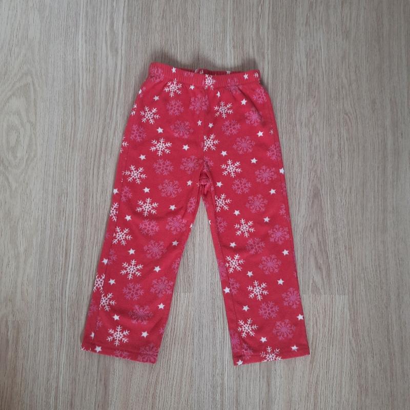 Пижамные штанишки из тонкого мягкого флиса для девочки 104-110см. Принт - снежинки, можно носить как домашние штаны Состояние отличное ПОТ 25 ПОБ 34 Длина по боковому шву 59 Шаг 38