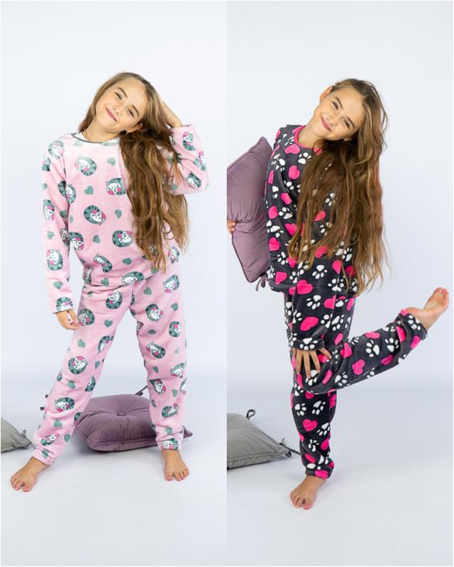 р122-430грн р128-470грн р134-500грн р140-550грн р146-580грн р152-600грн р158-630грн р164-650грн Теплая и уютная пижама для девочек – подростков приятно порадует своей мягкостью и невесомостью. Комфортный легкий материал и свободный крой способствуют полноценному отдыху и приятному сну. Пошито изделие из легкой махры или велсофта. Это трикотаж с густым и мягким ворсом. Благодаря высокой плотности ворсинок вещи получаются очень теплыми, причем изделия сохраняют свою форму даже после многочисленных стирок и на них не образуются катышки. При этом материал очень легкий, дышащий, гипоаллергенный. Изделия из велсофта не требуют особого ухода, они не растягиваются и не садятся под действием высокой температуры и других факторов, при стирке не линяет.