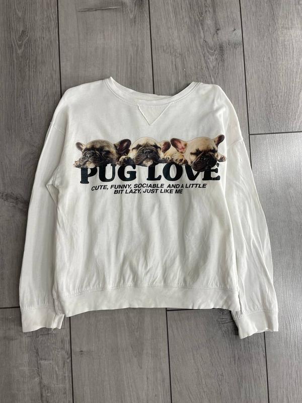 Лонгслив с принтом песики размер 8-10 лет есть небольшая дырочка по шву пог 42 длина 45 рукав от горла 52