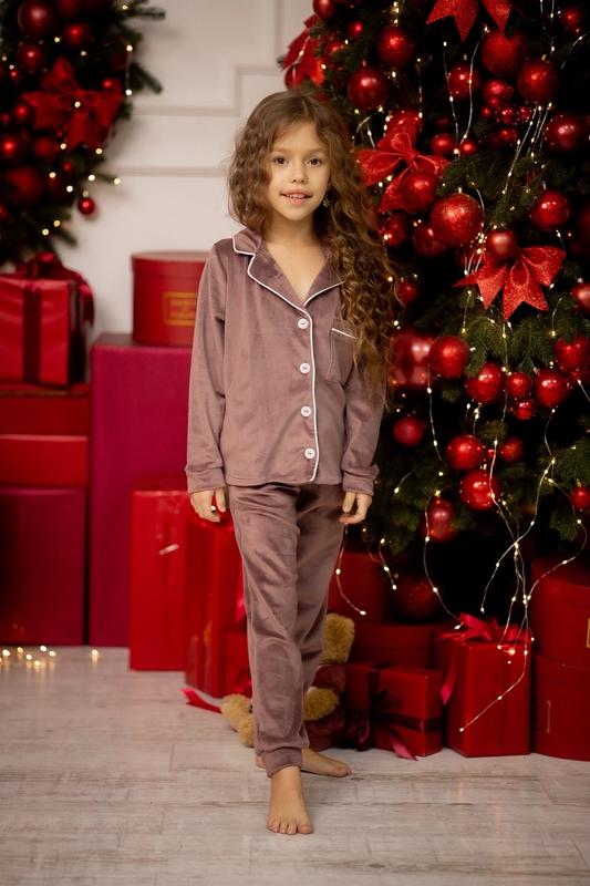 Затишна піжамка отличный комплект для дома ткань королевский велюр красиво тянется приятная к телу на кофточке по всей длине имеются пуговицы и один накладной карман в поясе на резинке красиво тянется,е карманы КАЧЕСТВО ЧУДОВА!! РЕКОМЕНДУЮ!!! 164-1шт рубашка длина/рукав от плеча/пог/брюки длина/шак/победер 146-55/52/46/86/65/43 152-58/54/47/90/68/45 158-60/55/49/94/72/48 164-61/56/50/96/73/50 +-2см