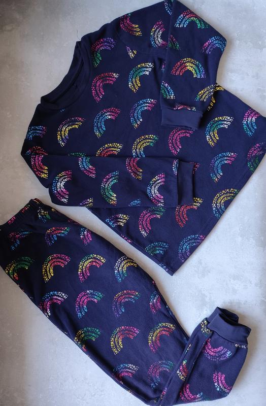 Флисовая пижама в почти идеальном состоянии, есть незначительные потертости на коленях, но в живую их совсем не заметно, добавляю фото брюк (последнее фото) размер по бирочке 140-146, лучше ориентироваться на замеры в фото объявления