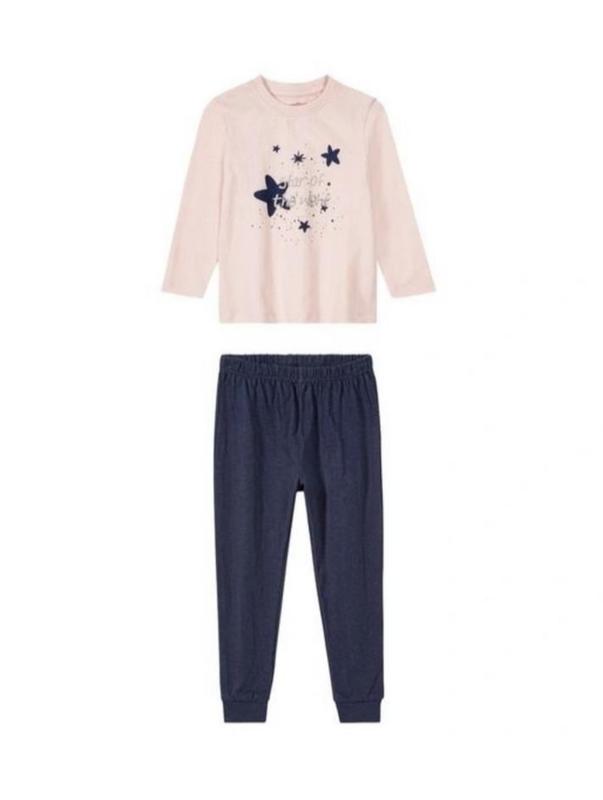 Пижама, комплект на девочку немецкого бренда Lupilu. 📏 размер 86-92 🧑🤝🧑 возраст 12-24 мес Состоит из реглана и брюк. Рисунок светится ночью. Реглан с круглым вырезом горловины и принтом. Штаны однотонные, снизу с манжетами, в поясе эластичная резинка без завязок. Комфорт при ношении благодаря чистому хлопку. Материал мягкий и приятный к телу. Качество очень высокое.