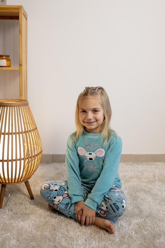 Неймовірна, тепла піжама для дівчат, виготовлена з полотна "Фліс". Модель стандартного крою, складається з джемпера та штанів, на рукавах та штанинах є широкі, еластичні манжети. Фліс - це дуже легка, тепла та невибаглива тканина, має багато чудових властивостей: гігроскопічність, повітропроникна, володіє теплоізоляційними властивостями, зносостійка та гіпоалергенна. Полотно: фліс. Склад: 100% поліестер. ,,2490