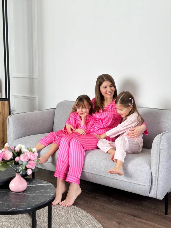 Женская и детская сатиновая пижама Женская в размерах: xs-s, m-l, xl-XXL Детская :110-116, 122-128, 134-140, 146-152 Цена за комплект: 2500 грн 📦Отправка НП