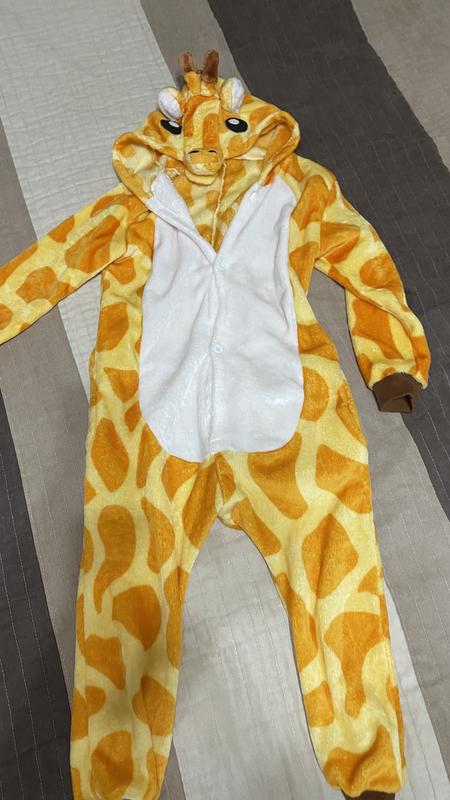 Пижама в виде жирафика, очень мягкая и теплая.Одетая один раз на пижамную вечеринку.Размер 120-128