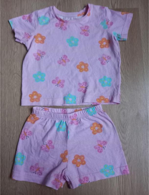Пижамка для девочки, шорты + футболочка, 100% коттон. Замеры: футболка - длина 33 см, полуобхват 31 см, Шорты - длина 21 см, ПОТ 22-30 см.