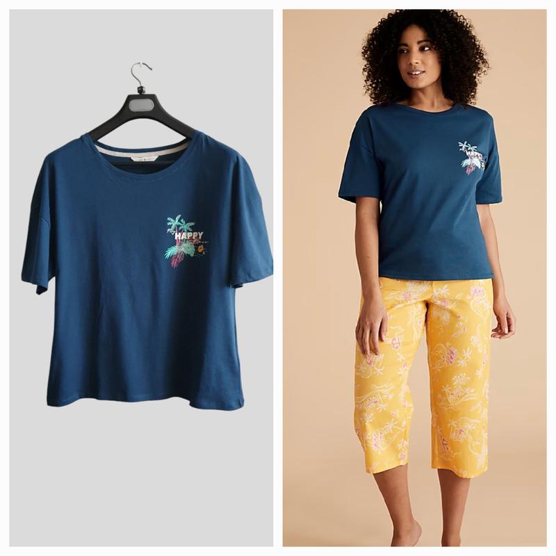 Футболка от хлопковой пижамы верх от пижамы с надписью happy place m&s р.16/ l
