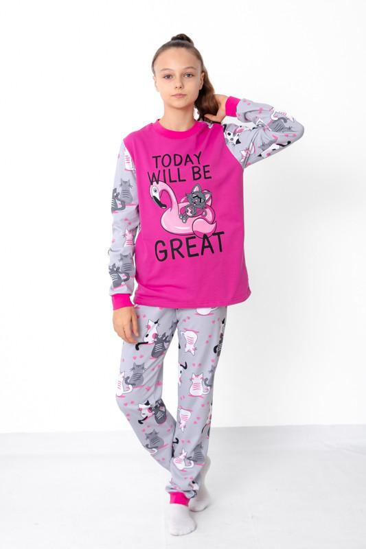 Теплая пижама с начесом для девочек подростков фламинго, подростковая утепленная пижама на...