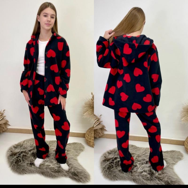 на ґудзиках з капюшоном штани в поясі під резинку є кишені Тканина ніжний, мʼякий фліс Гарна якість! зріст/довж.кофти/пог/рукав від горловини/довж.штанів/крок/пот/поб похибка+-2см 140/61/47/57/89/65/26/44-4шт 146/62/48/58/91/67/27/45-3шт 152/63/49/60/94/70/28/47-2шт 158/66/51/62/98/73/29/48-2шт ❤️