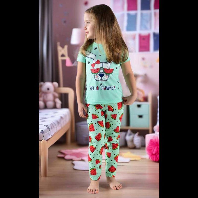 классическая удобная детская пижама из материала кулир. Футболка с коротким рукавом и ярким принтом, штанина резинке с набивным рисунком. замеры: размер 68: футболка длина 45 см, пол об груди 31 см. брюки длина 67 см. пол.об.стегна 38 см. пол.об.талия 21 см в спокойном состоянии, тянется до полу.об. 31 см. размер 76 длина футболки 52 см, пол о.грудь 32 см, длина брюк 74 см, полуоб бедра 43 см, полуоп талия спокойном состоянии 22 см, в растянутом состоянии 39 см. Замечательная пижама не теряет опрятного вида в процессе длительной эксплуатации и при правильном уходе выдерживает множество стирок. Стирка при t не более 40С; гладить при t не более 110С с изнанки, чуть влажным.
