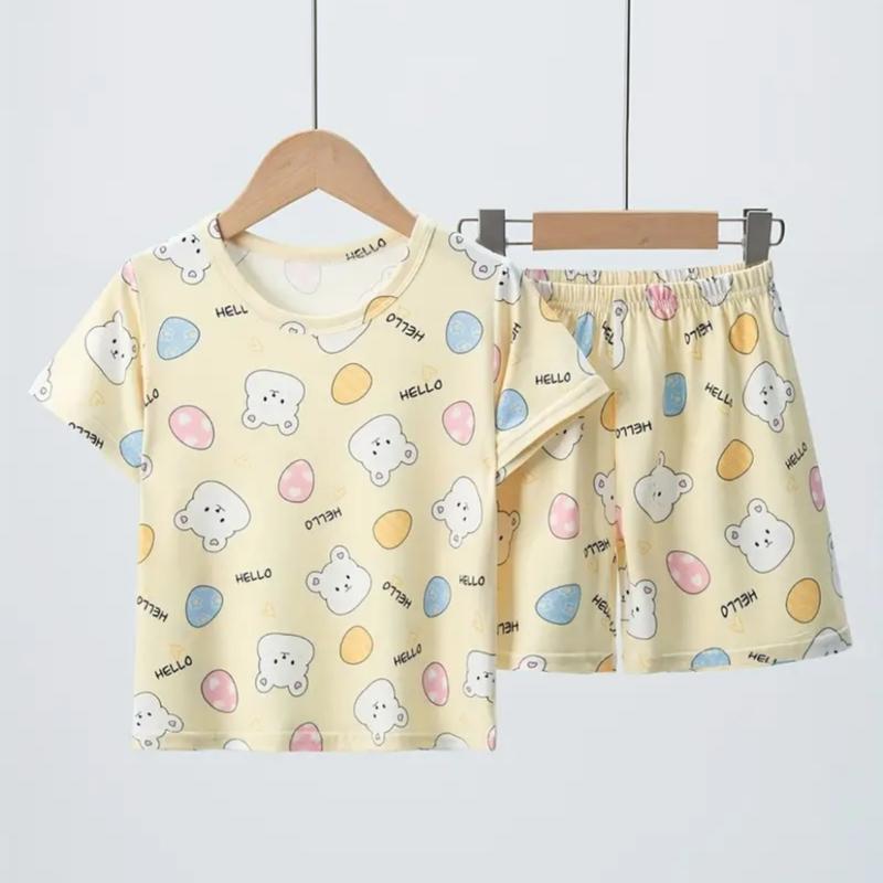 Літній дитячий піжамний комплект з миленьким кроликом та візерунком яєць Пасхи - Базові, круглий виріз, короткий рукав, трикотажна тканина, приемна до тіла,вільний крій, ідеально підходить для дітей, легке розтягування. рр