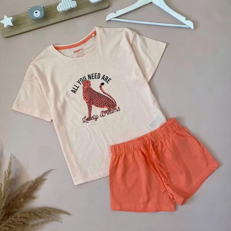 Пижама или домашний костюм от Pepperts Бавовна ✅122-128см(6-8р) 📏Футболка довж.49см. пог.41см Шорти довж.24см крок 5см ✅134-140см(8-10р) 📏 Футболка длиж.51см.пог.44см Шорти довж.24см.крок 6см ____ ▪️Цена 290грн