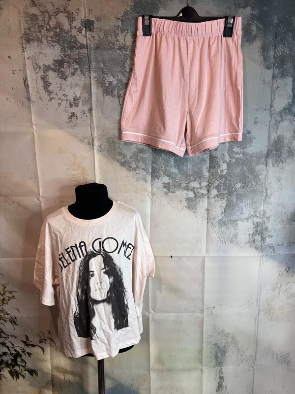 Состоит из футболки и майки Футболка оверсайз 164 Шорты 11-12 лет, 158 рост но происходят на 164 тоже За все 220грн Нове