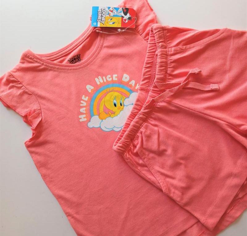Летняя детская трикотажная пижама. Комплект состоит из шортиков и футболки Костюм изготовлен из натурального материала, который надежно сохраняет оптимальную температуру тела, позволяет коже дышать, очень приятный на ощупь. Пижама свободного кроя не стесняет движения, поэтому в ней комфортно не только спать, но и ходить по дому. В наличии размер 122-128 на 6-8роков Длина футболки -47см,дпг+35см. длина шорт22,талия по резинке -28см,шнурок рабочий, имеют 2 боковых кармашка.