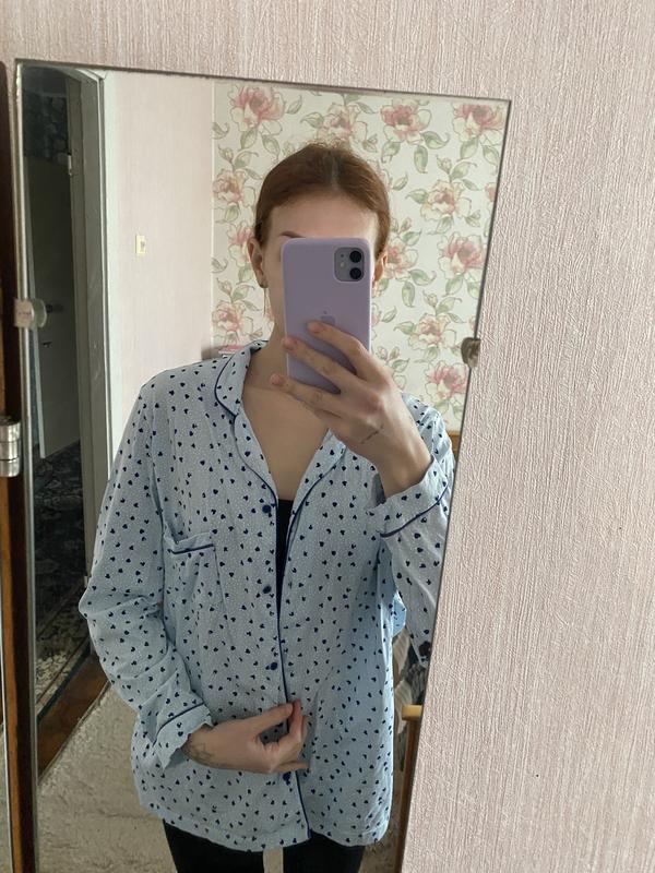 Чудова піжамна сорочка. Стан - дуже хороший. Розмір хс-с буде вільна і також підійде для м-л. Досить приємна тканина.