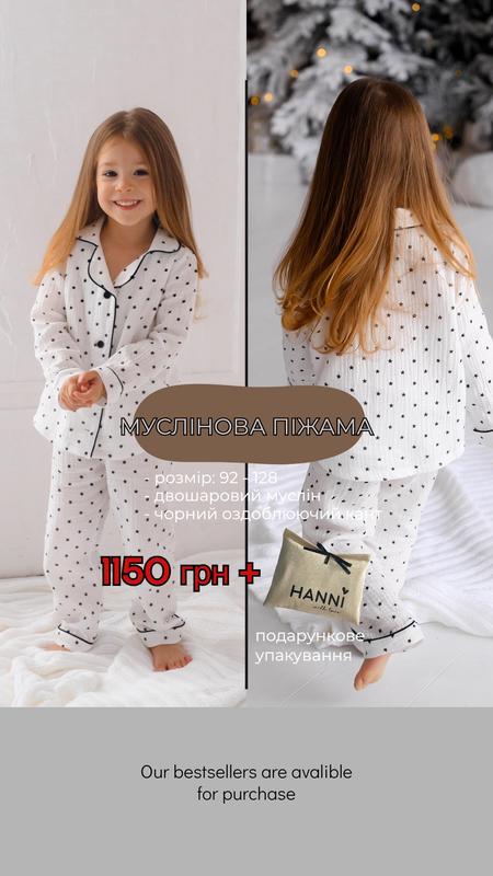 І наша новенька піжамка: - двошаровий муслін - чорний оздоблюючий кант - пояс який ідеально фіксує - розмір: 92-128 Ціна: 1150 грн