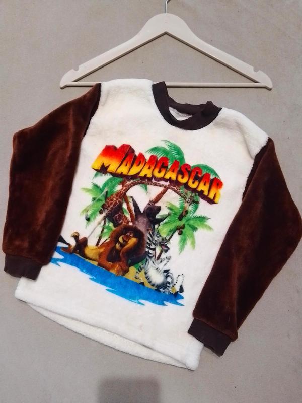 Кофта от детской пижамы Принт Мадагаскар. Материал: мягкий плющ. Длина: 50 см. ПОГ : 41 см. ПОТ : 38 см. Длина рукава: 42 см.
