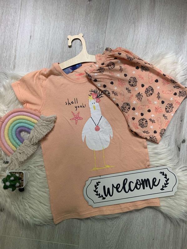 🌸🌸🌸 Летняя пижамка/летний костюм "Shell yeah" в сеточку (футболка + шорты), для девочки от 4 до 6 лет (110/116 рост), бренд Lupilu Германия ✅️ Описание на рост 110/116 см, 4 - 6 лет: - Футболка с ярким принтом в сеточку (перфорированная ткань) (100% хлопок) Полуобъем плеч - 27 см Полуобъем груди - 35 см Общая длина - 54 см - Шорты с рисунком в сеточку (перфорированная ткань) (100% хлопок) Полуобъем талии - 23 см, увеличивается за счет вшитой резинки на талии Общая длина - 29 см 🎀 Бренд - Lupilu Страна производитель- Германия 🔥 Нежная и очень качественная пижама! Можно носить как обычный летний костюм, в комплекте футболка и шортики! Набор изготовлен из качественных материалов, которые не вызывают аллергических реакций. Соответствует стандартам качества мировой системы OEKO-TEX. Тканина - 100% бавовна 💌 Смотрите еще другие Мои объявления!