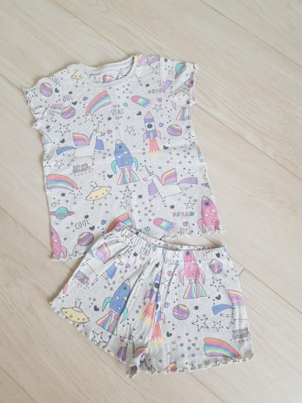 Пижама в рубчик NEXT 6 года ФУТБОЛКА длиж 44 см ширина 35см ШОРТИ длиж 22 см пояс 25 см
