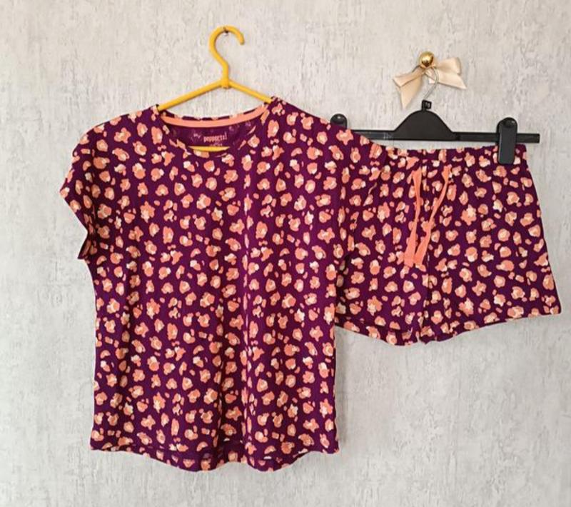 Летняя детская трикотажная пижама. Комплект состоит из шортиков и футболки Костюм изготовлен из натурального материала, который надежно сохраняет оптимальную температуру тела, позволяет коже дышать, очень приятный на ощупь. Пижама свободного кроя не стесняет движения, поэтому в ней комфортно не только спать, но и ходить по дому. В наличии размер 134-140 на 8-10роков Длина футболки -52см,дпг43см. длина шорт-24см, талия по резинке -29см. Размер 146/152 на 10-12 лет
