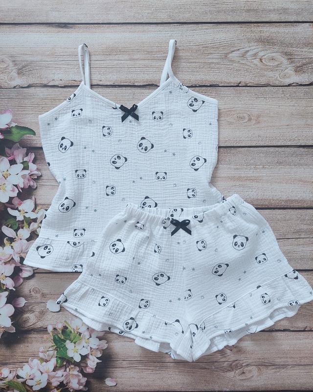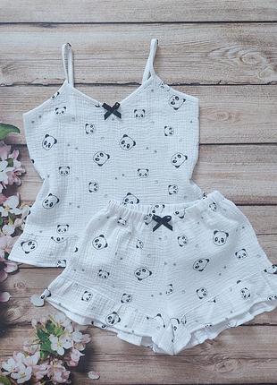 Женская муслиновая пижама из натурального хлопка легкая летняя пижама пандочка