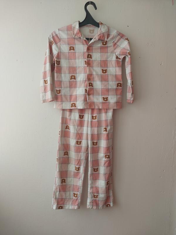 Нежная детская пижама в отличном состоянии. Довжина кофтинки 44 см, ширина 38 см, рукав 41 см. Довжина штанів 65 см, крок 45 см, по поясу 26 см, по стегнах 40 см.