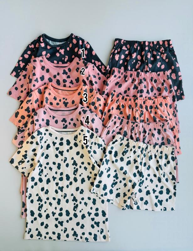 Літні піжами для дівчаток із лео принтом Розміри 🌾5-6 є всі 🌾6-7 є всі 🌾7-8 є всі 🌾8-9 є всі 🌾9-10 є 1, 2, 3, 4 🏷️440 грн одна Заміри 📏 5-6: футболка довжина 48, ширина 34; шорти пояс 25, довжина 27 📏6-7: футболка довжина 49, ширина 35; шорти пояс 25, довжина 28 📏7-8: футболка довжина 51, ширина 37; шорти пояс 27, довжина 29 📏8-9: футболка довжина 52, ширина 39; шорти пояс 28, довжина 30 📏9-10: футболка довжина 55, ширина 41; шорти пояс 30, довжина 32