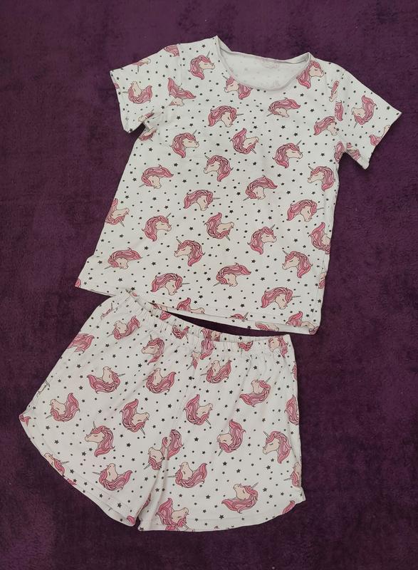 Симпатичная пижама в отличном состоянии. Длина футболки 58 см, ширина 44 см, длина шортиков 32 см, по поясу 35 см, пояс на резинке. Материал хлопок