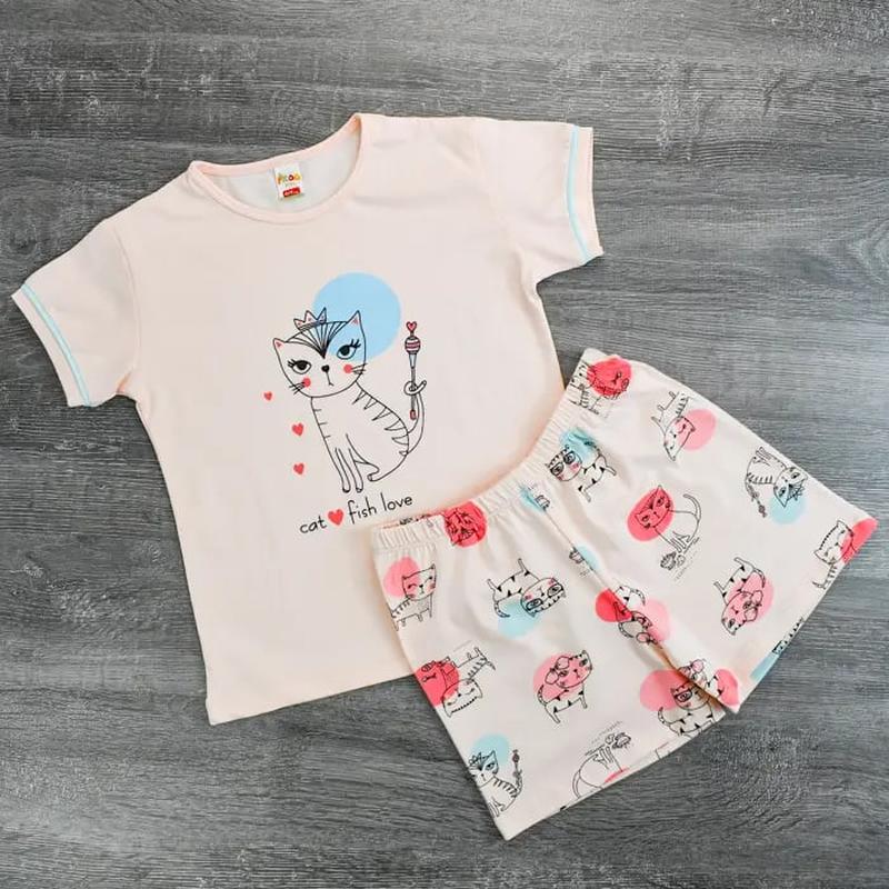 Детская пижама, в комплекте футболка + шорты. Материал - 95% Хлопок, 5% Эластан. Размеры: 10/11 лет Цвет: пудра. Цена 570 грн