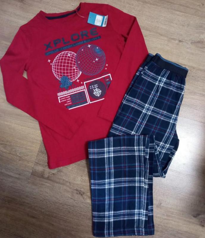 Пижама - домашний костюм от производителя Pepperts Тканина 100% cotton. Брюки идут теплые фанелевые очень мягкие и приятные к телу.Шнурок рабочий можно фиксировать талию. размер 134/140 на 8-10 лет. длина кофты-56см дпг-41см. длина рукава -51см. длина брюк-85см шаговой шов-64см. талия по резинке 29см.