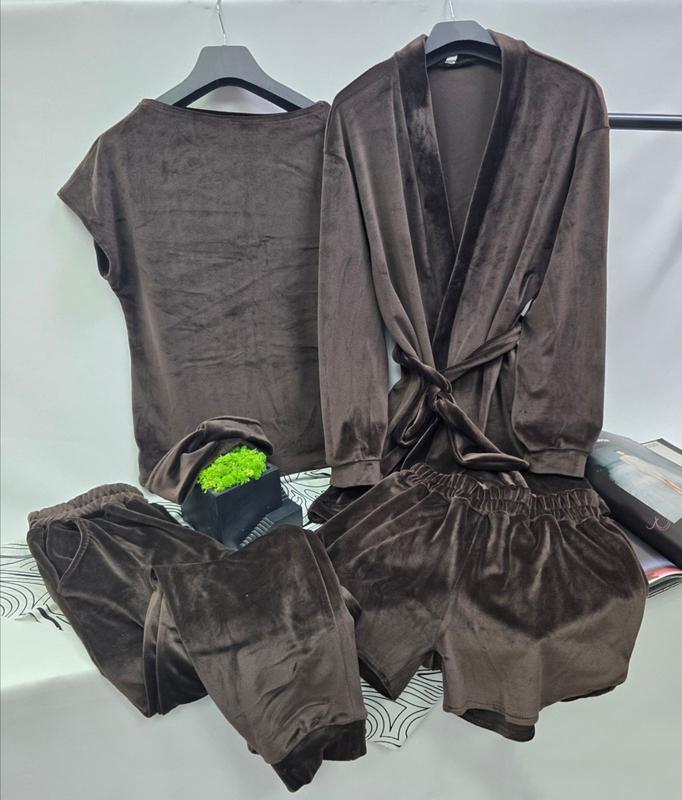 Отшив / отправка 1-7 рабочих дней РЕКОМЕНДУЕМ!👌 ❗️Кнопку КУПИТЬ не жмите, до уточнения деталей ❗️ НАШ ХИТ! Отшито и продано более 5 тыс единиц! Что может быть уютнее и комфортнее, чем Ваши любимые комплекты 4ка. Велюровый комплект 4в1: халат-кимоно с поясом, брюки, шорты, футболка. 🔹140 размер футболка длина 51 см; пог 37см халат длина 71 см; пог 45 см; рукав от ворота 59см шорты длина 30см; шаг 7 см; пот 27 см брюки длина 87 см; шаг 58,5 см; пот 27см 🔹146 размер футболка длина 53см; пог 39см халат длина 75см; пог 47 см; рукав от ворота 63см шорты длина 30см; шаг 7,5см; пот 28см брюки длина 90 см; шаг 62,5см; пот 28см 🔹152 размер футболка длина 56см; пог 41см халат длина 79см; пог 49см; рукав от ворота 65см шорты длина 32см; шаг 8см; пот 29см брюки длина 92 см; шаг 65,5 см; пот 29см 🔹158 размер футболка длина 58 см;пог 43см халат длина 84см; пог 51 см; рукав от ворота 67см шорты длина 32см; шаг 8,5см; пот 29см брюки длина 95 см; шаг 67,5 см; пот 29см 🔹164 размер футболка длина 58см; пог 43см халат длина 86см; пог 53см; рукав от ворота 70см шорты длина 32см; шаг 8,5см; пот 30см брюки длина 95см; шаг 67,5см; пот 30см Ткань: турецкий королевский плюшевый велюр на трикотажной хлопковой основе ⭐️ Оттенок может отличаться Безопасной оплаты нет ❗👈 🚚Новая почта, есть наложка с предоплатой 200 грн 🚛 Укрпочта, есть наляжка с предоплатой (+5грн упаковки) По оплате и доставке уточняйте дополнительно, к покупке! Возвращение отсутствует, делайте свой выбор обдуманно. Осмотрите товар в отделении,ссечение из дома не рассматриваются! Благодарю что дочитывали😊 омар